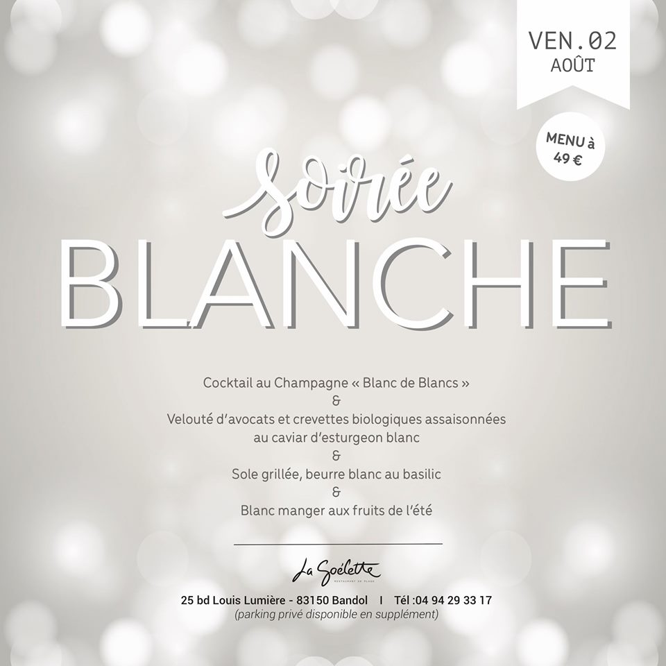 SoiréeLe blanc sera à l'honneur vendredi 2 aout 2019 au restaurant de plage La Goélette !