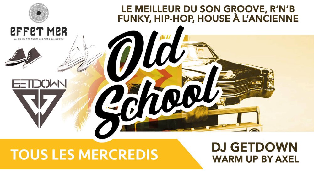 Tous les mercredis DJ GETDOWN prend le contrôle du nouvel Effet Mer avec la soirée OLD SCHOOL. Hip-hop, r'n'b, funk, house... Les titres les plus cultes et les plus festifs vous attendent pour le rendez-vous de tous les mélomanes qui ont soif de "good vibes" ! Warm-up by Axel.