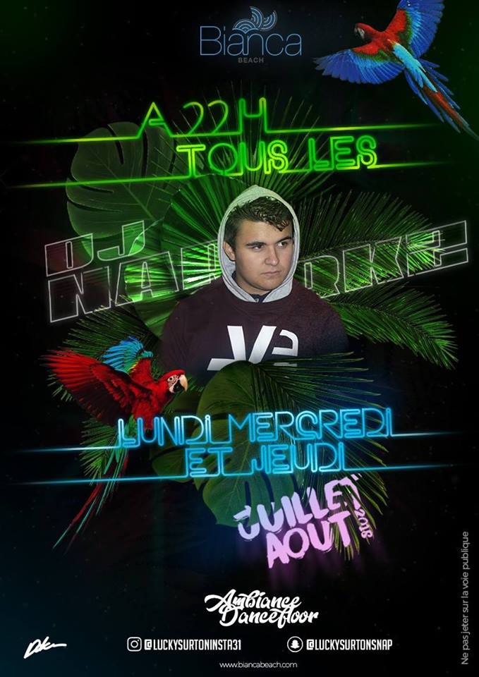 DANCEFLOOR PARTY tous les lundis, mercredi et jeudis de l'été sur la plage du Bianca Beach avec DJ NARKZ !
