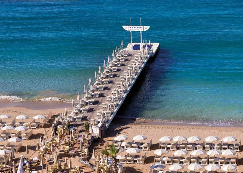 Située face au célèbre hôtel Carlton, cette plage privée incarne l’élégance et le raffinement. Dégustez des plats méditerranéens tout en profitant d’une vue imprenable sur la mer. - L’Ecrin Plage